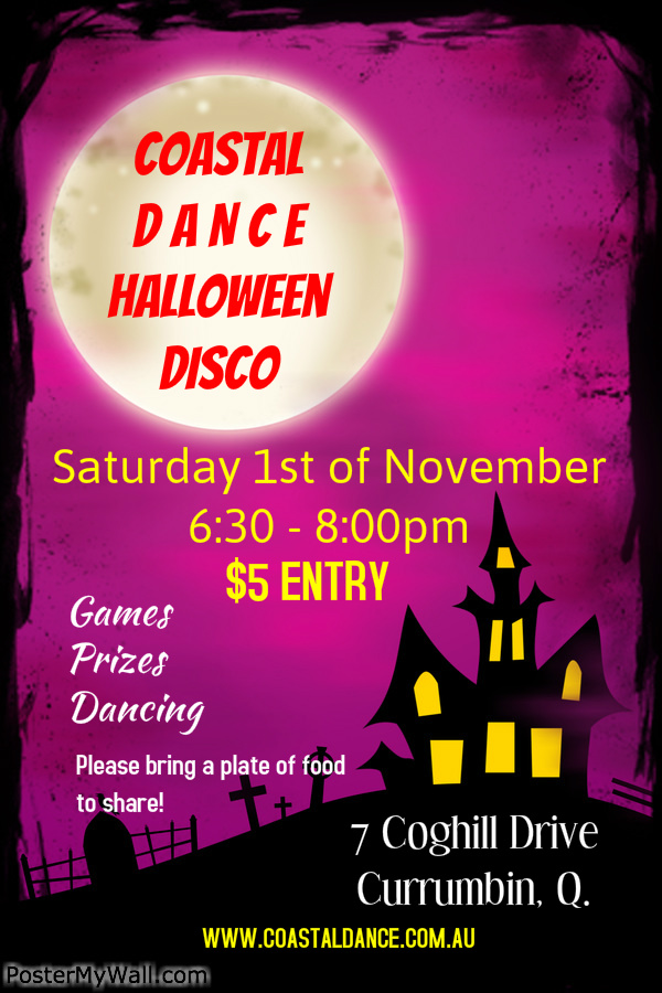 We will be holding our 3rd annual Halloween Disco on Saturday the 1st of November from 6:30 – 8:00pm. Entry is $5 & students are asked bring a plate of food to share. The event is open to students of Coastal Dance & their friends. This is a great night for the kids to socialise outside of dancing & they always have lots of fun. Prizes for the best dressed!