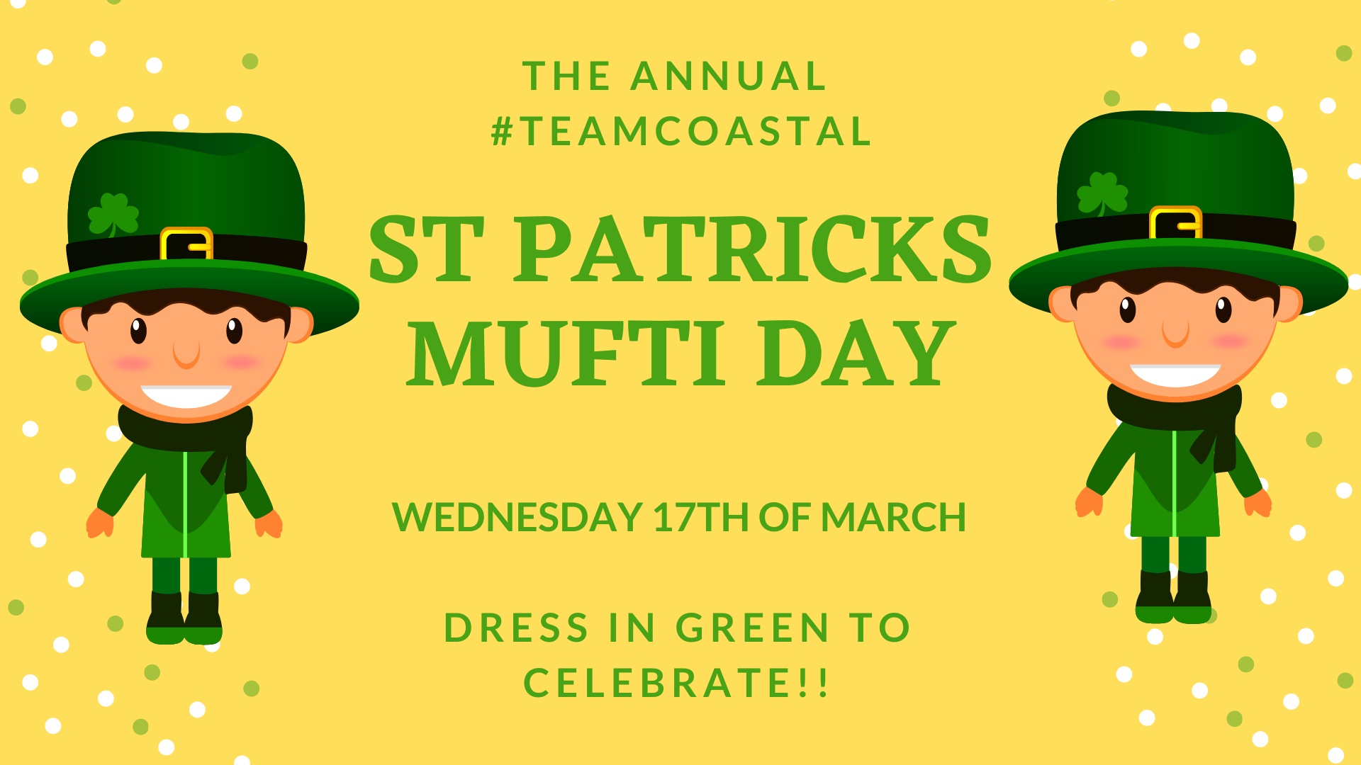St Patrick’s Mufti Day ’21 Posted bycoastaldanceMarch 2, 2021Posted inUncategorized Our annual St Patrick’s Day will be held on Wednesday the 17th of March (St Patrick’s Day!). All Wednesday Jazz & Tap class are welcome and encouraged to dress in GREEN to celebrate! Share this: Click to share on X (Opens in new window) X Click to share on Facebook (Opens in new window) Facebook Like Loading... Related