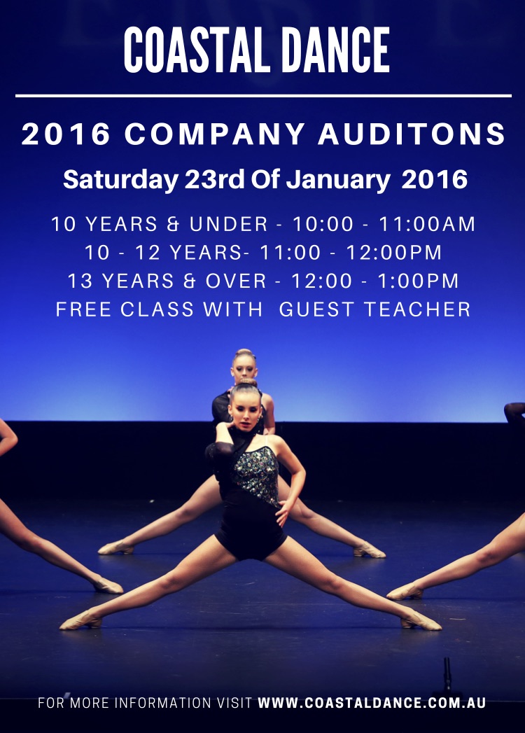 In 2016 Coastal Dance will be holding our first ever company auditions for students wishing to compete in our 2016 eisteddfod teams. Coastal Dance performs in 4 local eisteddfod throughout the year & students are also given performance opportunities within our local community. Students joining our company are required to commit to the entire 2016Continue reading “Company Auditions”